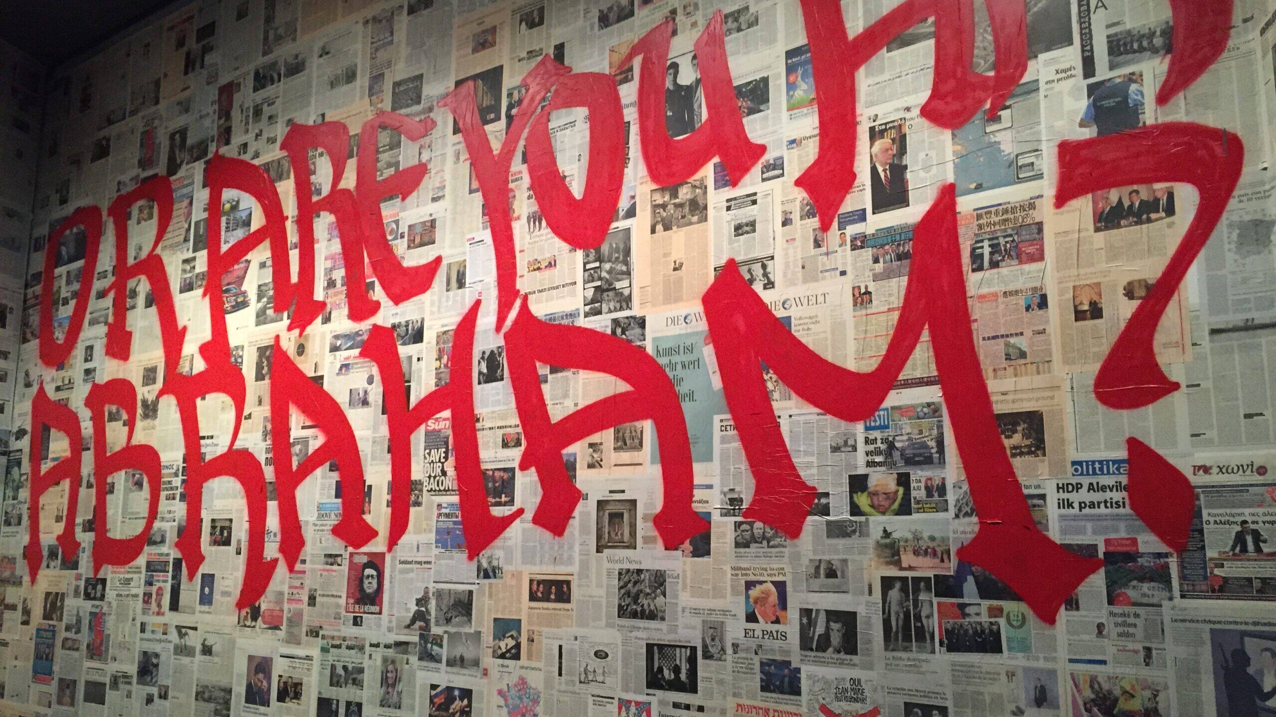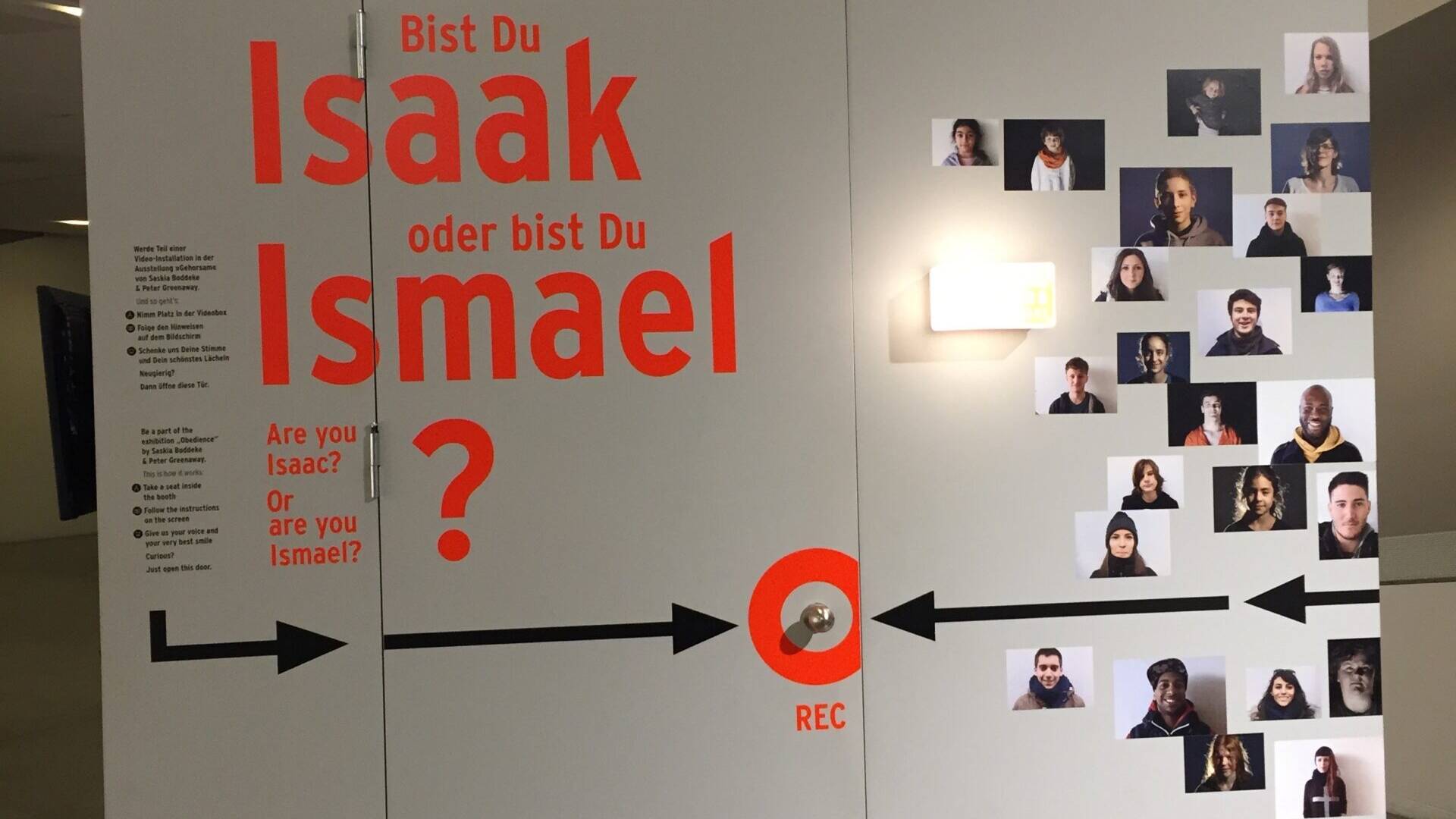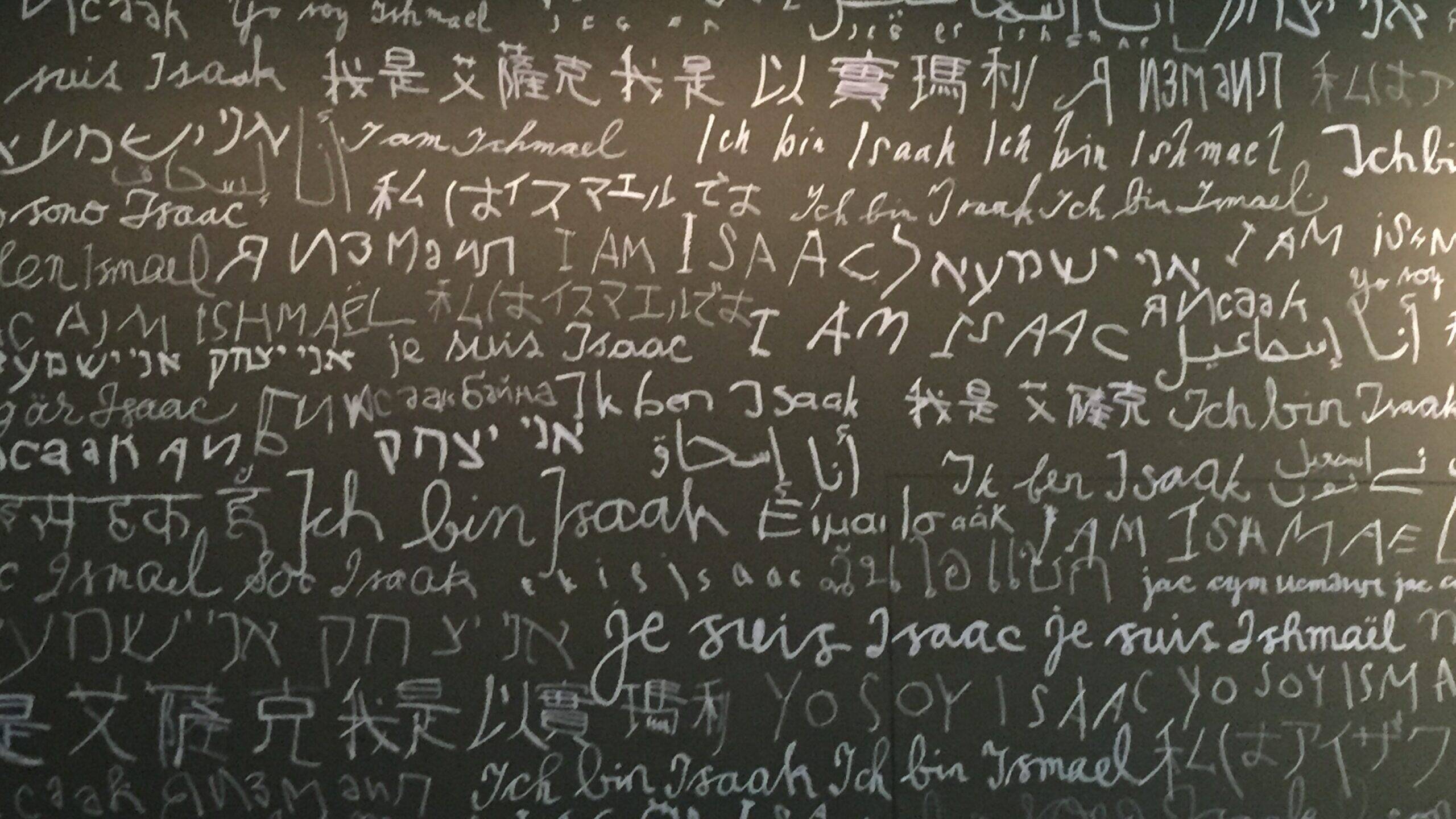 İlk odada “I am Isaac” “I am Ishmael” “Ich bin Isaac” “Je suis Isaac” “Ben İshak’ım” sözlerini söyleyen kişilerin gösterildiği bir film sürekli başa sarıp oynuyordu. İlk önce kim olduklarının önemli olmadığını düşündüğüm değişik yaş, cinsiyet, milliyet gruplarının bu sözleri tekrar etmesi üzerine kurulu bir çalışma gibi göründü gözüme. Bunları izleyip, içimden “İşte yeni bir soyut sanatın simgesel izdüşümleri” falan gibi alaycı yorumlar yaptığımı anımsıyorum. Bu düşüncelerimin asıl entelektüel ukalalığın izdüşümleri olduğunu sonradan anlayacaktım.