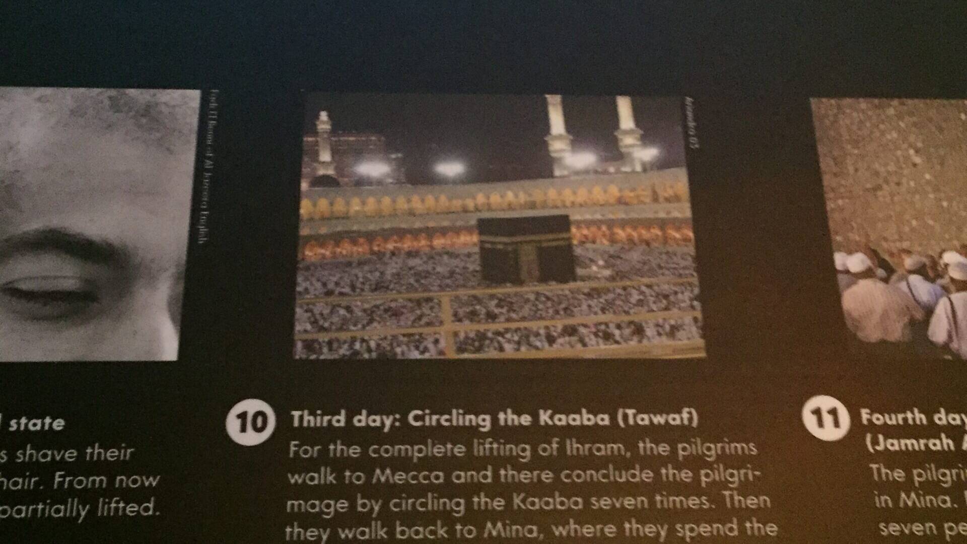 Bir sonraki oda “İslam”. Hac sırasında erkeklerin saçlarının tıraş edilir(miş), bu yüzden Arko tıraş kremi görmeyi umduğum en son yerde: Dini inançlar ve ritüellerle ilgili bir sergide. Hac sırasında yedi gün boyunca nelerin yapıldığı detaylı bir şekilde açıklanmış, resimler, yazılar.