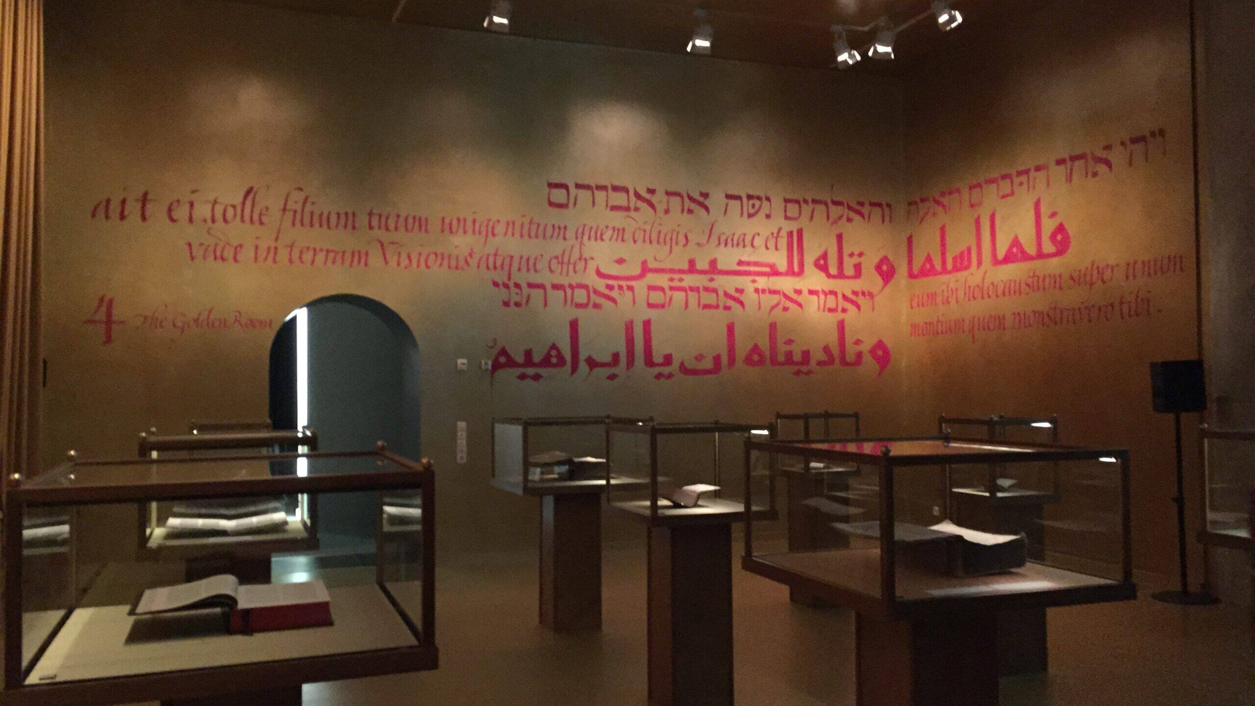 Dördüncü “Altın Oda”: Loş ışıkta cam mahfazalarında altın kakmaları parlayan, dünyanın bir çok müzesinden, kilisesinden bu sergi için toplanmış, yaş ortalaması beş yüz yıl olan el yazması otuz civarındaki kutsal kitabın ihtişamı ile duraksadığımı anımsıyorum. Her bir kutsal kitapta olay sahnesi açılmış, İbrahim oğlunu kurban etmeye çalışıyor; bazılarında meleğin gelişi de resmedilmiş. Karanlıkta parlayan kurban sahneleri.