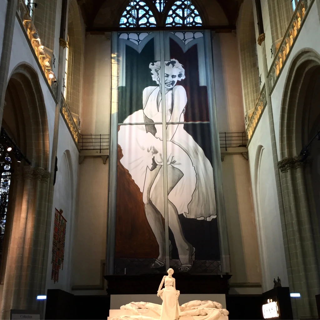 Amsterdam’ın ana meydanlarından birinde ilginç bir serginin ilanı vardı. Bu sergi gelmiş geçmiş en ünlü yıldızlardan biri olan Marilyn Monroe’nun 90. yaş gününü kutlamak üzere düzenlenmişti. Buraya kadar her şey tamamdı. Yalnız sergi bir kilisede düzenlenmişti. Ta 15. yüzyıldan kalma bir Hollanda kilisesinde, Amerikalı bir seks sembolüne ait bir sergi vardı. Kilisenin mihrabında, alışık olduğumuz haç, İsa, Meryem yerine, devasa bir Marilyn Monroe bulunuyordu.